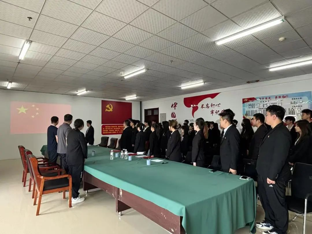 会议伊始,全体党员神情庄重,起立并齐声高唱国歌。激昂雄壮的旋律在会场内回荡,承载着对伟大祖国的无限热爱与崇高敬意。