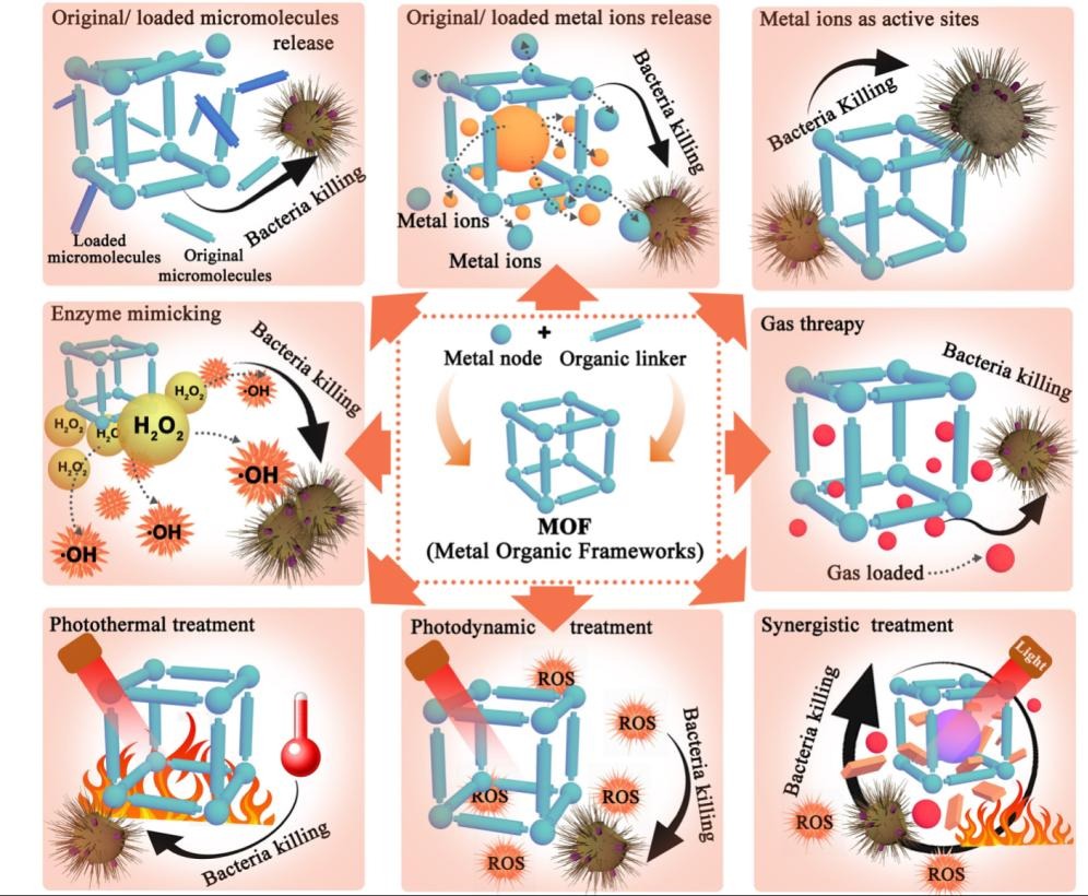 抗生素的大量使用导致了耐药细菌的出现,这些耐药菌可以无视传统抗生素的攻击,再次对人类的生命造成威胁。因此,针对非抗生素类的、安全、高效的新型抗菌材料的研究迫在眉睫。而其中金属有机框架材料表现出巨大潜力。