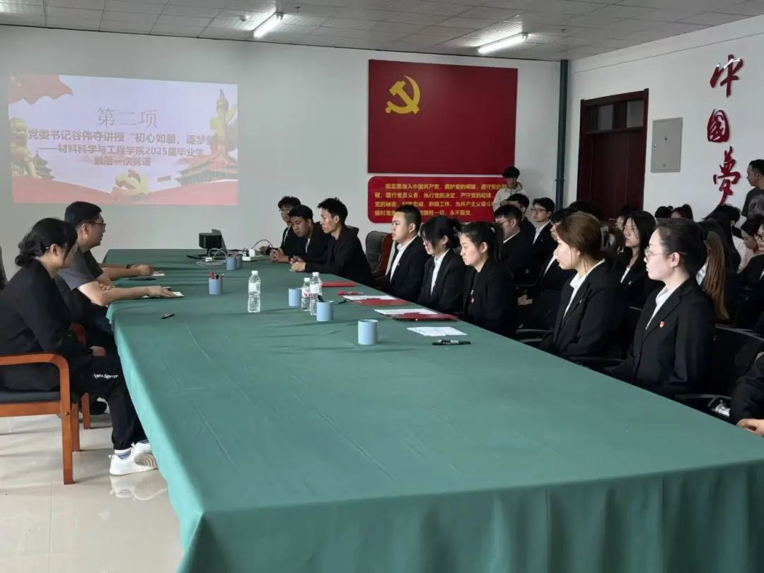 会议第二项,党委书记谷伟夺讲授“初心如磐,逐梦新篇”主题党课。他强调,步入社会后,毕业生党员将面临更加多元化的环境和更加严峻的挑战,唯有时刻牢记入党时的铮铮誓言,常思“我是谁、为了谁、依靠谁”,才能始终保持初心。这次党课既是一场深刻的思想淬炼,也是一次临行前的殷殷嘱托。