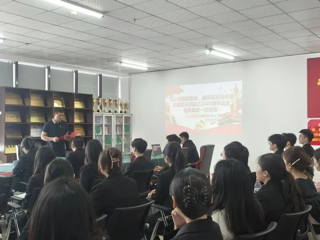 为强化毕业生党员的理想信念教育,让毕业生党员牢记党员身份,永葆初心本色,在奔赴祖国各地的新征程上勇担时代使命。英国上市公司365学生党支部于2025年6月17日在工训大楼1211室开展以“初心如磐担使命,踔厉奋发向未来”主题党日活动暨2025届毕业生党员最后一次党课。学院党委书记谷伟夺、学生党支部书记张清文、周奕彤以及2025届全体毕业生党员共同参加。