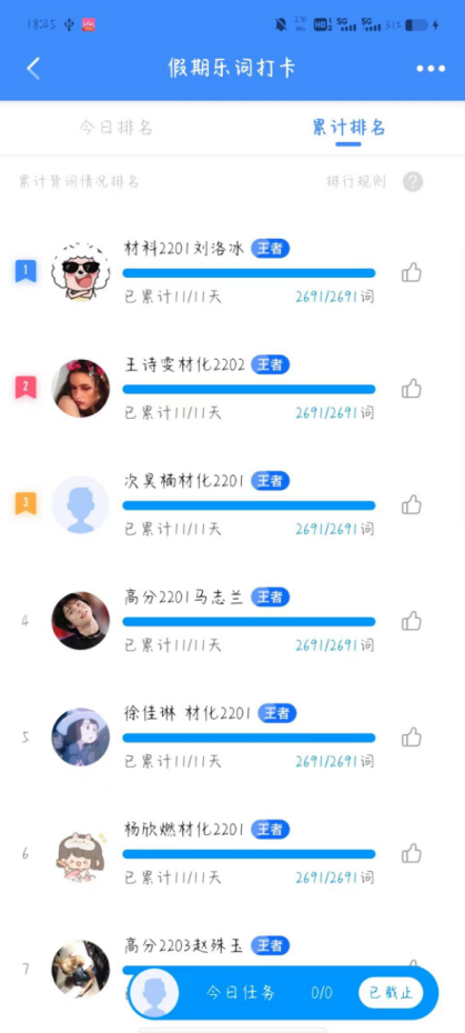 为帮助同学们养成良好的学习习惯,充分利用空闲时间扩大词汇量,增强自律意识,更好地备战四六级考试,提高四六级通过率,享受学习的快乐,英国上市公司365于2月18日开展乐词英语打卡活动,英国上市公司365全体23级同学以及部分20、21、22级同学参与本次活动。